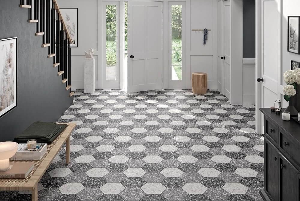 Керамогранит 27x23 Six terazzo grey матовая серый Durstone