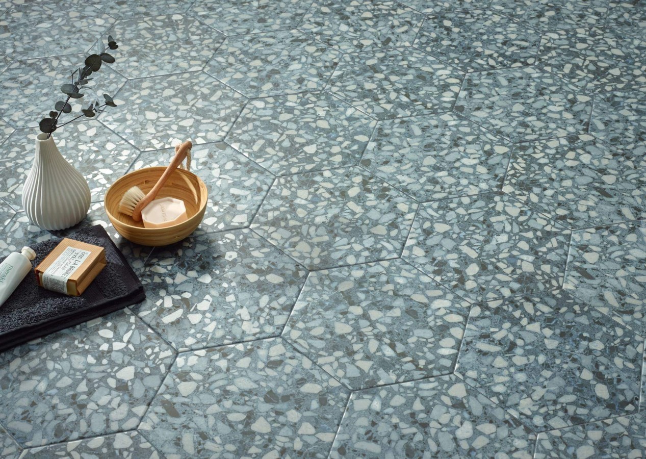 Керамогранит 27x23 Six terazzo blue матовая голубой Durstone