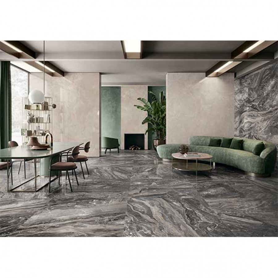 Керамогранит 120x60 Keen Grey Luc Anima Futura глянцевая, полированная серый мрамор Caesar