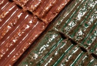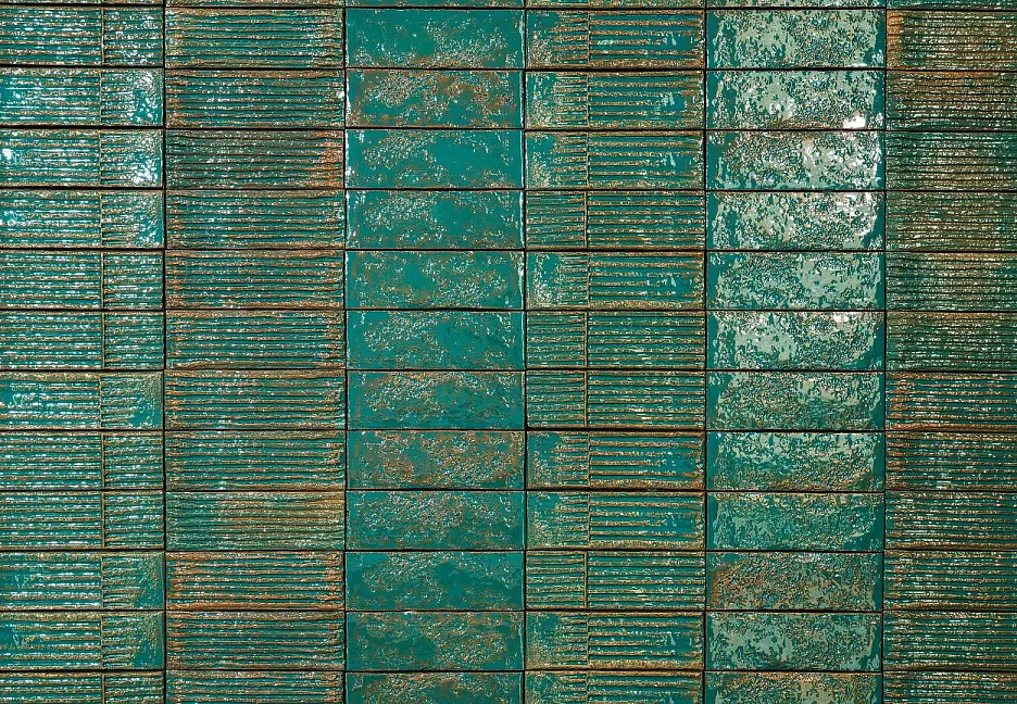 Плитка 23x8 Mono Verde Chamotte глянцевая, рельефная бирюзовый однотонный Mutina
