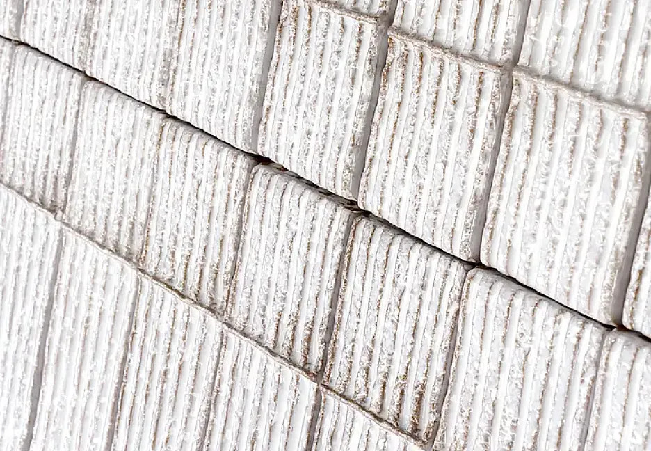 Плитка 23x8 Quadra Bianco Chamotte глянцевая, рельефная белый в полоску Mutina