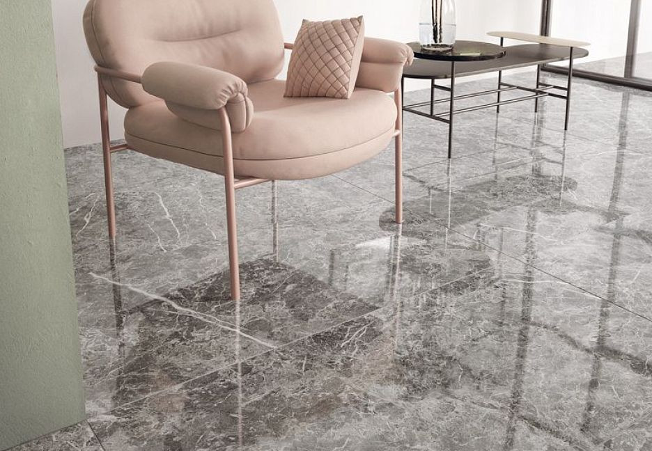Керамогранит 60x60 Grigio Imperiale Lap Elements Lux лаппатированная серый мрамор 10мм Keope Ceramiche