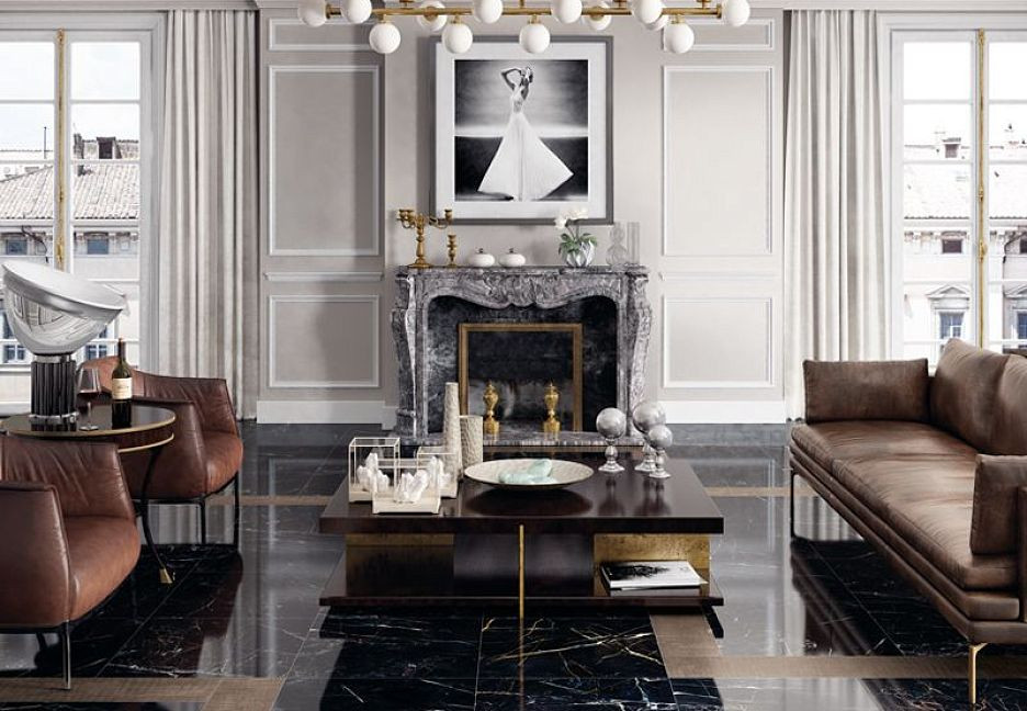 Керамогранит 60x60 Port Laurent Lap Elements Lux лаппатированная черный мрамор 10мм Keope Ceramiche