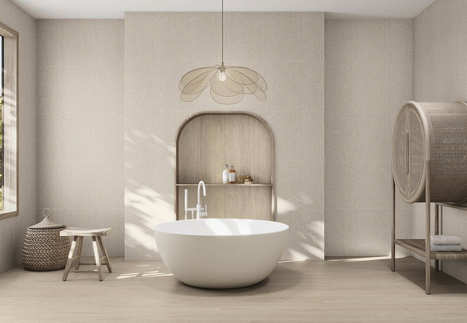 Керамогранит 120x60 Leaves Linen Rect Matt Munui матовая бежевый в полоску 6мм Ape