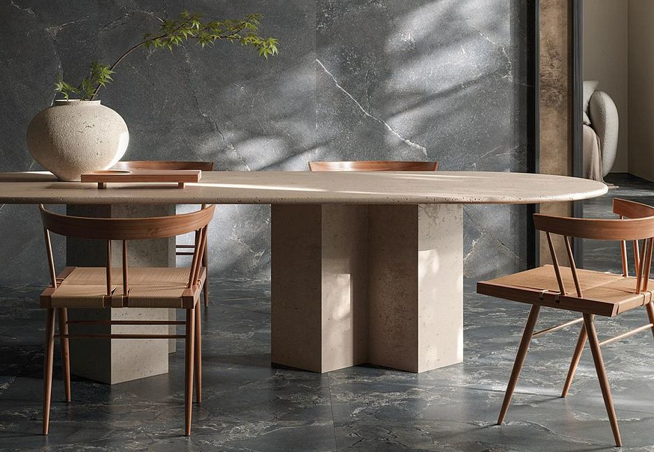 Керамогранит 278x120 Cobblestone Black Matt Unique Infinity матовая черный травертин 6.5мм Provenza