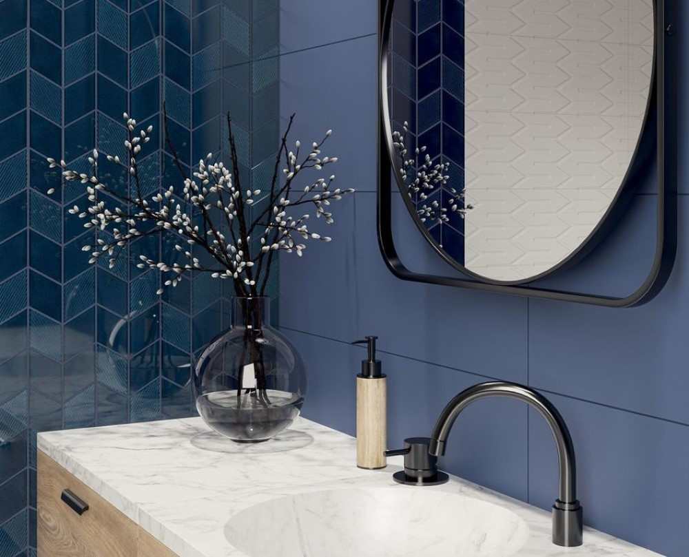 Плитка настенная 75x25 Nightwish Navy Blue Tonal Struktura Rekt матовая Ceramika Paradyz