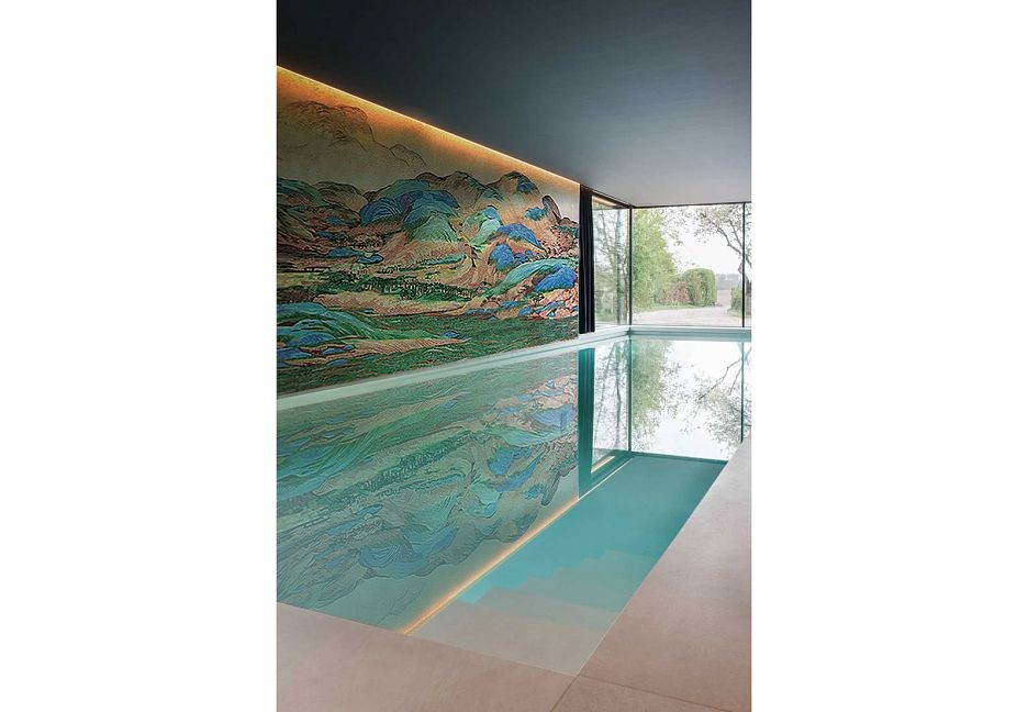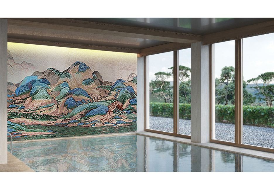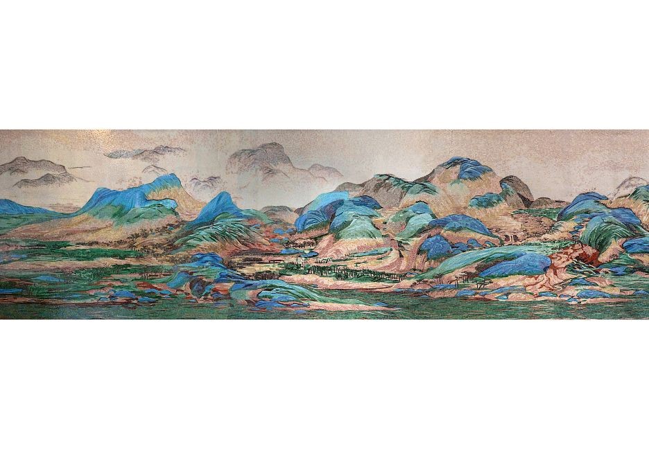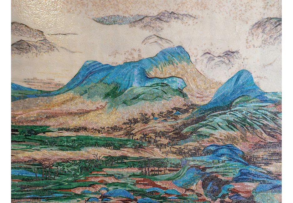 Панно - 15360x2680 Размер: 15 680 См Стеклянная Мозаика Горы И Воды На Тысячу Ли бежевый Art Natura