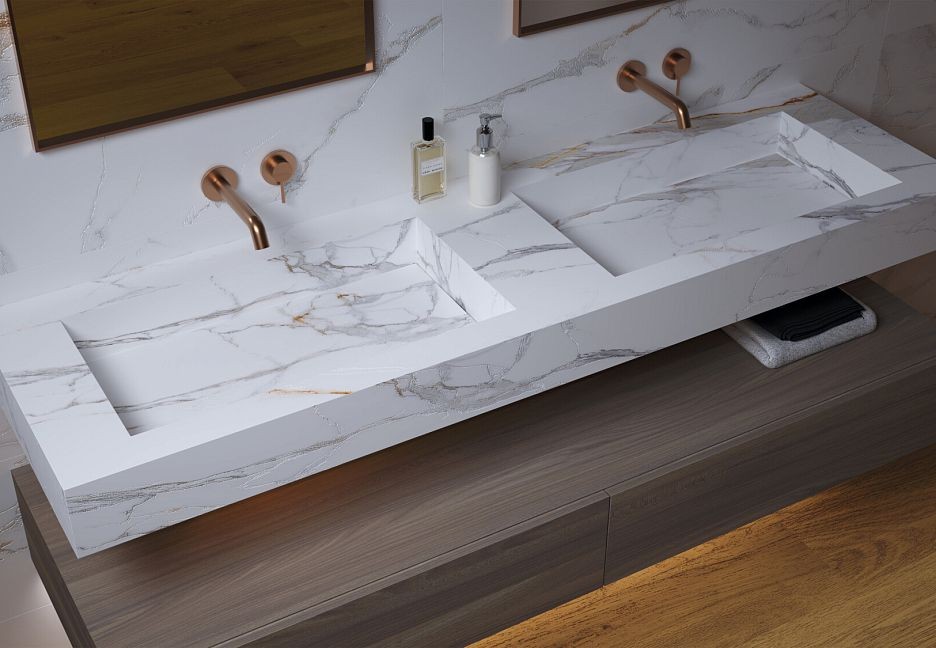 Керамогранит 180x100 Керамогранит Museum Praline полированная белый мрамор 8мм Museum