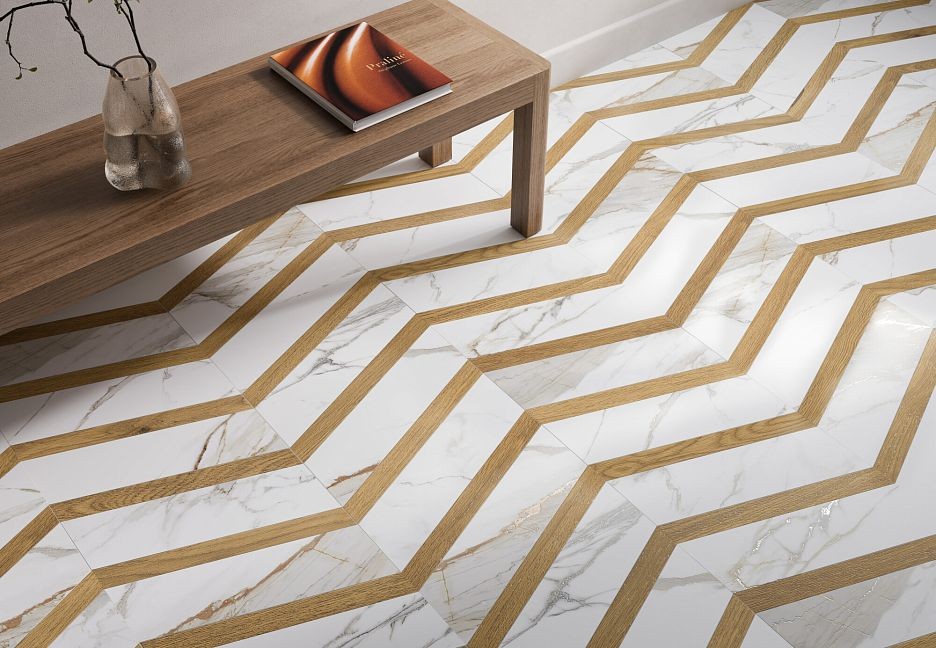 Керамогранит 120x60 Керамогранит Museum Praline полированная белый мрамор 10мм Museum