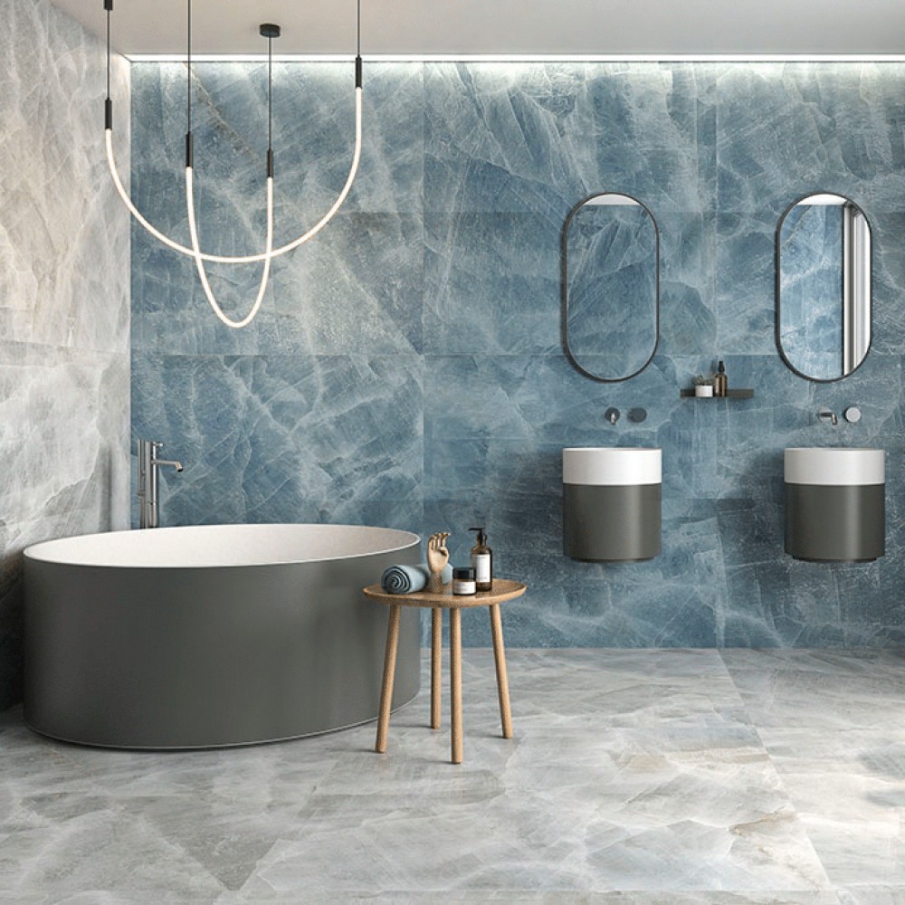 Плитка Geotiles Frozen Blue лаппатированная голубой