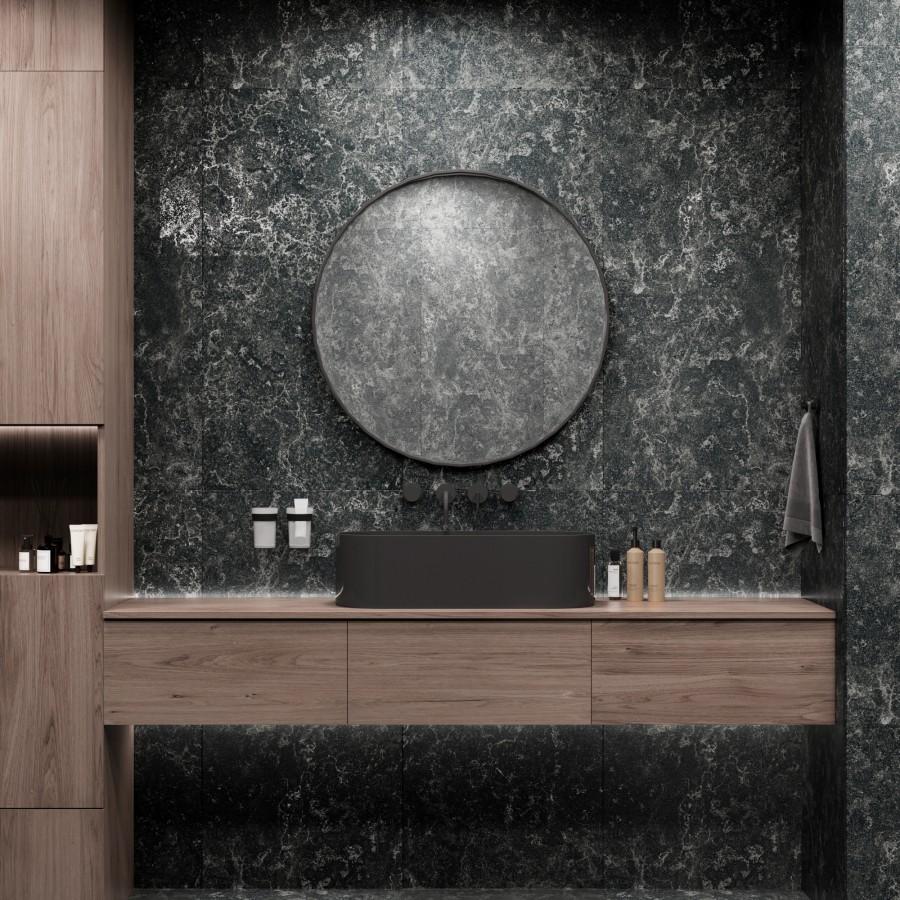 Керамогранит 120x60 8мм матовая с глянцевым эффектом GI8014-CB Palatino Nero чёрный камень Arcadia Ceramica