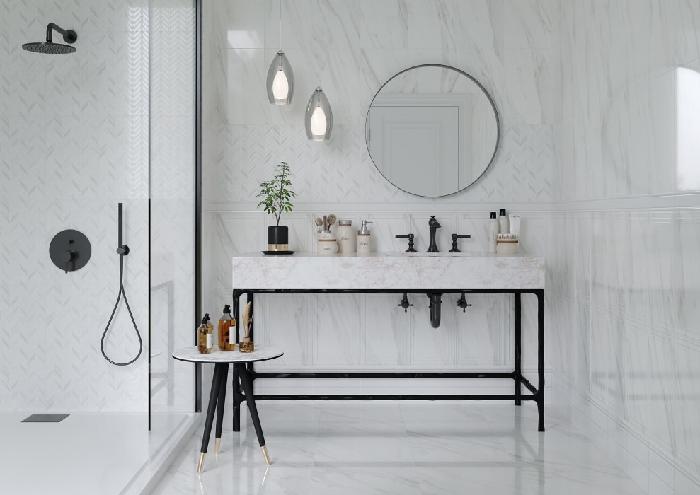 Плитка 40x25 Леона настенная светлый низ 03 глянцевая белый Шахтинская