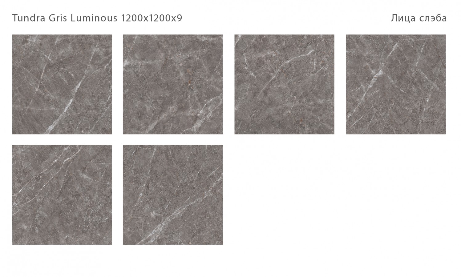Керамический слэб 120x120 9мм Polished Tundra Gris Luminous полированная зеркальная Staroslabs