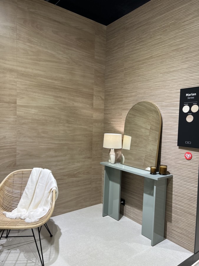Плитка настенная 120x40 XS Марлен Слэт Нат/темно-коричневая рельефная матовая Argenta