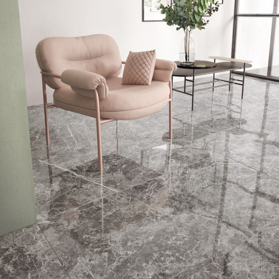 Керамогранит 60x60 Grigio Imperiale Lap Elements Lux лаппатированная серый мрамор 10мм Keope Ceramiche