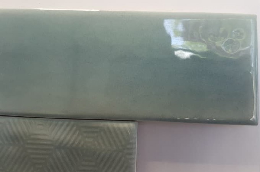 Плитка 30x8 настенная Opal Emerald гладкая + рельефная глянцевая зелено-синий Cifre