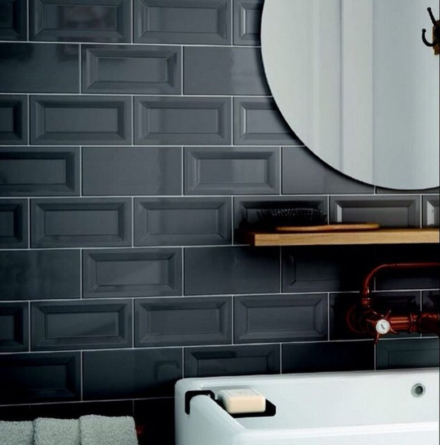 Плитка 15x10 Black In Metro глянцевая моноколор рельеф Equipe
